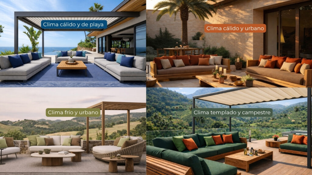 Diseñar con textiles para exteriores y telas de alto desempeño que respondan a climas cálidos y condiciones reales de uso es lo que marca la diferencia.