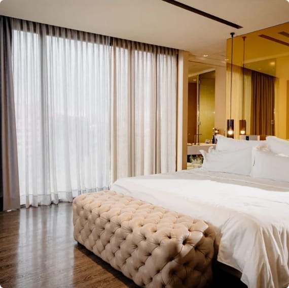 Desarrollamos soluciones textiles superiores que responden a las necesidades de desempeño, diseño y personalización que requieren los proyectos comerciales inmobiliarios de hoteles, oficinas, auditorios y todo el sector salud.